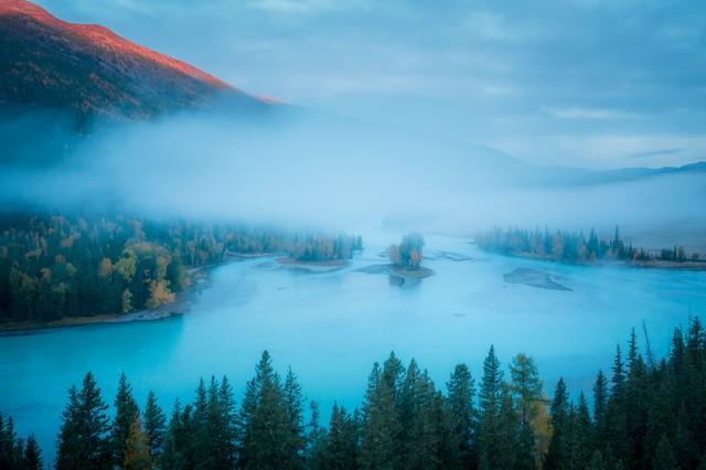 喀纳斯在蒙古语里意思是“美丽而神秘的湖”。湖水的颜色会随着季节和光线变化,有时是翡翠绿,有时是深蓝色。最让人津津乐道的是“湖怪”传说,虽然没有定论,但给这片湖添了不少神秘色彩。比起湖水,喀纳斯的秋天更让人挪不开眼——两岸的泰加林变成金黄和橙红色,倒映在平静的湖面上,像一幅油画。登上海拔2030米的观鱼台,整个喀纳斯湖尽收眼底,远处的友谊峰雪山若隐若现。
