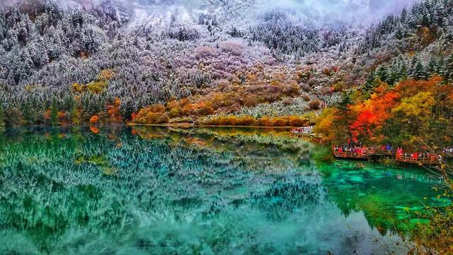 九寨沟的名气不需要太多铺垫。“九寨归来不看水”这句话流传了几十年,至今没有被推翻。这里的水,颜色是别处很难复制的——五花海的蓝绿色像打翻的颜料盘,镜海能把整座山完整地倒映出来,诺日朗瀑布的水雾在阳光下时常挂起彩虹。秋天的九寨沟最为惊艳,彩林倒映在水中,山与水连成一片。即便遭遇过地震,九寨沟的自然恢复力让人惊叹,重新开放后依旧美得不像话。